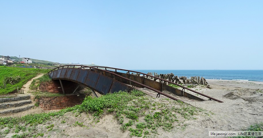 橋並不大,但橋面舖著木質地板,海風推著細沙堆積在橋頭兩端。